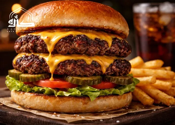 در اسمش برگر، پنیر فقط یک چاشنی نیست؛ پنیر حکم چسب را دارد که لایه های برشته گوشت را به هم وصل می کند. معمولاً از دو لایه گوشت نازک (Double Smash) استفاده می شود که بینشان پنیر کاملاً ذوب شده است.