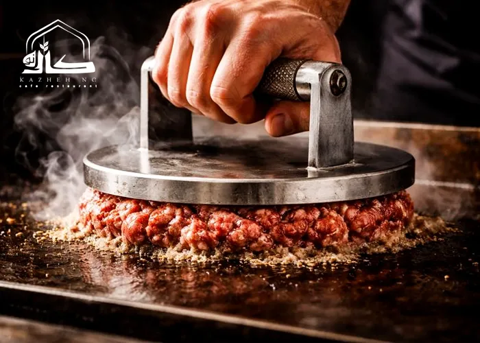 شاید فکر کنید با فشار دادن، آب گوشت در می رود و گوشت خشک می شود. اما نکته حرفه ای اینجاست: اگر فشار در ۳۰ ثانیه اول (قبل از اینکه چربی گوشت شروع به ذوب شدن کند) انجام شود، یک لایه محافظ زیر گوشت تشکیل می شود که بقیه عصاره و چربی را داخل بافتِ نازک گوشت حبس می کند. نتیجه؟ یک برگر که بیرونش مثل چیپس ترد است و داخلش از نرمی آب می شود.